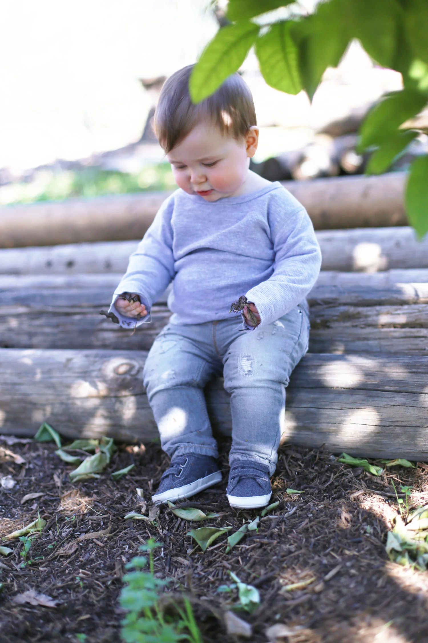 Baby style is so much fun. On that note I had to share a couple of finds for lil man that I am just loving. At the top of the list are these American Apparel thermal shirts. They are lightweight and comfy. Lil man wears these all the time. He even wears them to sleep. A couple of weeks ago, we went to the Farm and donned shades of gray including this thermal shirt.