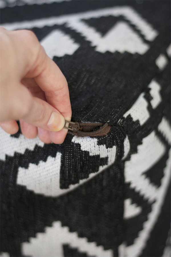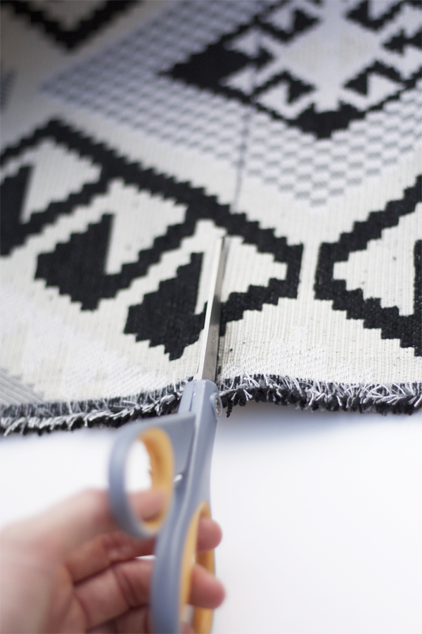 1) 1 yard of fabric or 1.5 yards to be safe (This navajo-inspired fabric is from Home Fabrics and Trims in downtown LA. You will need to call 213.689.9600 or email info@homefabricsandtrims.com to order the fabric. The fabric is called Kilim color: black and is $24.95/yd )