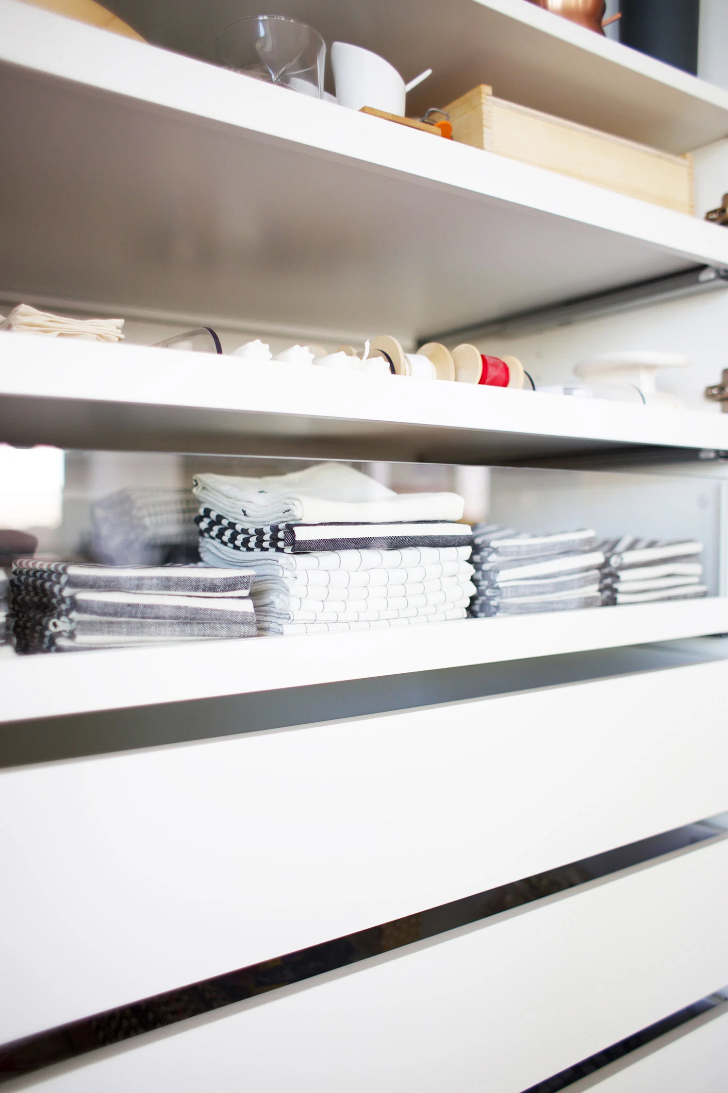 My final tip is to leave some empty drawers. I don't know about you but as minimally as I try to live, I inevitably collect more stuff. You don't want to constantly have to rearrange your everything cabinet as you collect more, so I recommend leaving some extra room.