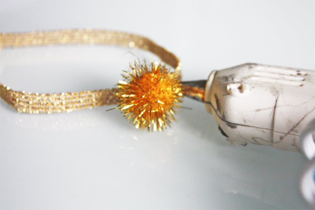 Step 3: Glue as many gold poms onto the elastic as you want!